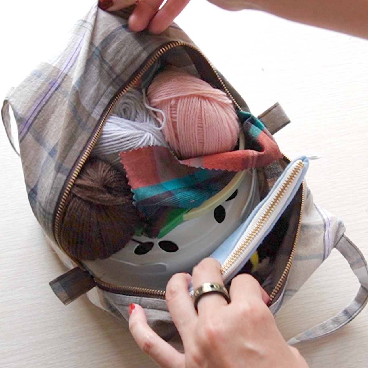 チャック付きでフリステのスタンドや毛糸などがすっぽり入る大容量なのに、エコバッグのような軽さが嬉しいトートバッグ